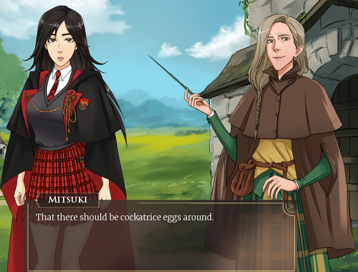 So, what's our progress status this week? We are confidently moving forward. I have written one more random event and even have found some time and inspiration to get back to finishing the last few parts of the Halloween event that have not been finished until now. As many have rightfully stated, the game does lack the events that would visibly gauge the players' growing stats (aside from the exams which every single player wants to pass first try). So that's what I set out to do. There were a couple of recurring events before, and more were planned for later. But I decided to move that "later" a bit closer to "today". One such event was written a while ago, but it makes little sense without Shady Two's artwork, so it’s waiting until she has time to attend to it. But this new Spell Practice event doesn’t need one, so players will have something to test their skills repeatedly throughout the game.